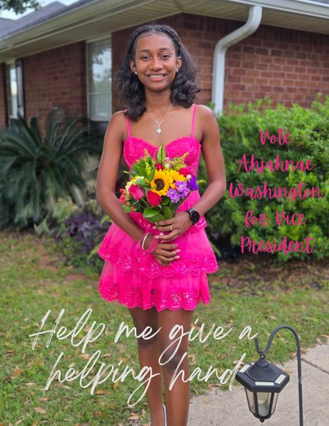 Hi, I’m Ahjahnae’ Washington. I’m from Biloxi, and I’m running for junior class vice president. At MSMS, the vice president should have good ideas and be organized. I think I offer the perfect blend of practical planning skills and a deep commitment to our class’s experience. I am a strong communicator committed to translating our class’s needs into tangible action, keeping every event and initiative on track and running smoothly. I’m here to ensure that our junior year isn’t just successful, but truly memorable — from start to finish. I’m dedicated to delivering the best possible junior year. Vote Ahjahnae’ Washington – your wave of change!