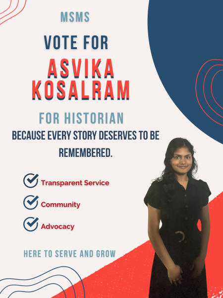 My name is Asvika, and I’m from Flowood, Mississippi. I’m running for historian because I want to preserve the memories and stories of our MSMS community. I’m hardworking, organized and full of ideas for keeping our social media and yearbook fresh and memorable. I’m excited about the chance to serve as historian and make sure everyone’s experiences at MSMS are captured. I’d love your support!