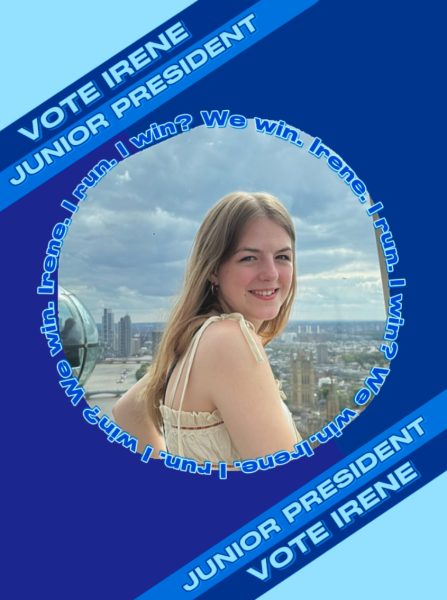 My name is Irene Doyle. I’m from Oxford, and I’m running for president. The students I’ve met here are kind, creative critical thinkers, and I would be honored to represent them and help make all their wonderful ideas realities. I would work to connect the student body, ensure all students feel seen and heard and promote communication and collaboration within junior class officers. I’ve served on student council and committees the past two years, founded and presided over Oxford High School’s writers club and worked in a leadership position at my old job, so I feel fully prepared to serve as junior class president. I wish the best of luck to the other candidates and look forward to the rest of my time with the Class of 2027!